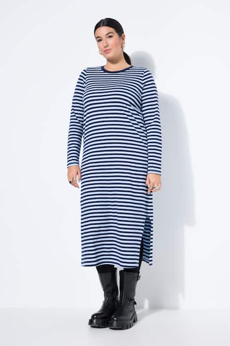 Rochie lungă, croială în formă de A, jerseu cu dungi, mâneci lungi